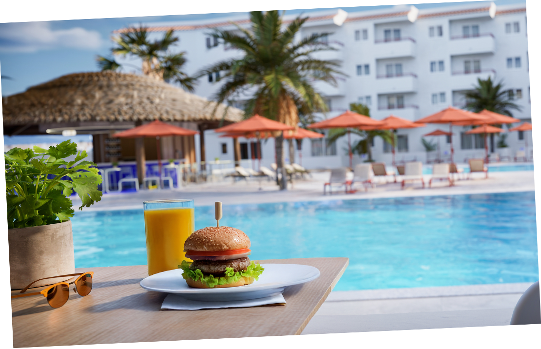 Un bar donde pasan cosas, una piscina con sabor y un restaurante con platos que no se olvidan.